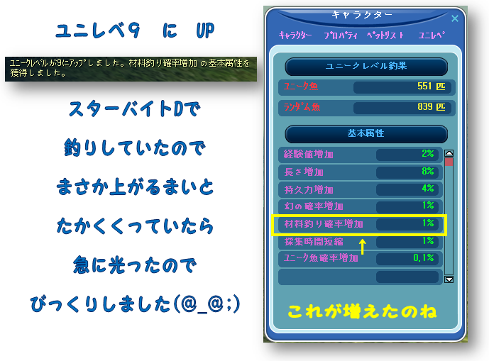 ユニレベ9UP、気にはしていたんですが、光るとこは撮れなかった(>_<)
