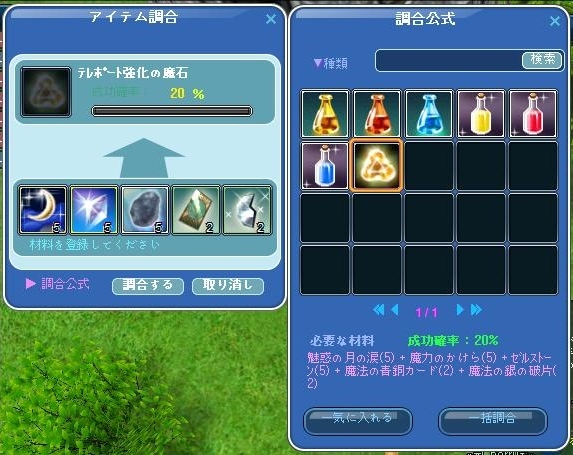「テレポート強化の魔石」 : 調合成功確率 20%