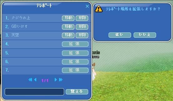 ※テレポートの拡張は、最大で4回行う事ができ、7カ所覚える事ができます。(既存3箇所含む)
