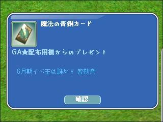 6月期のイベ王で皆勤賞取ってカード10枚獲得しましたが…
