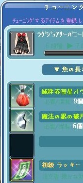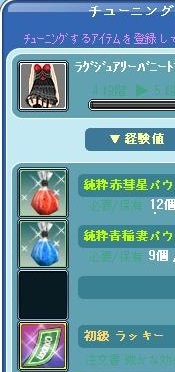 これまで確率が上がるまで材料を交換したりでために貯めていたラグジュアリーバニードレスLV80を遂にチューニングする時が来ました!!