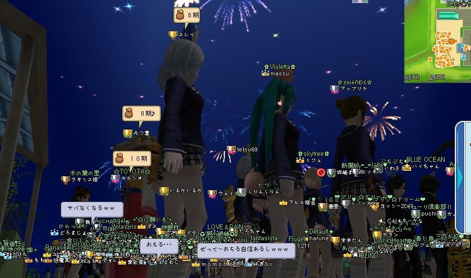 ものすごい人数で一度落ちました^^;;8期3組は一人しか参加者がいなかったです^^;;