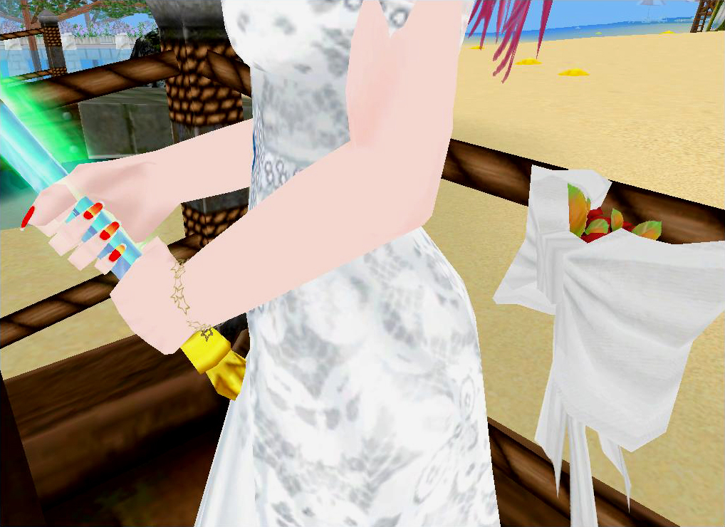 この間とりかえたのは、上のSSのように、今のイベントで作れる星型ブレスレットなのですが、このブレスレットを装備していると、ネイルがまっ赤っかになるようです。