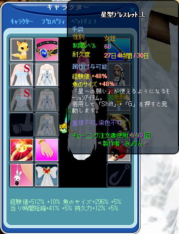 これは左手を見ていただければわかるように、この間取り替えた手袋装備、ブレスレットに依存しているようです。