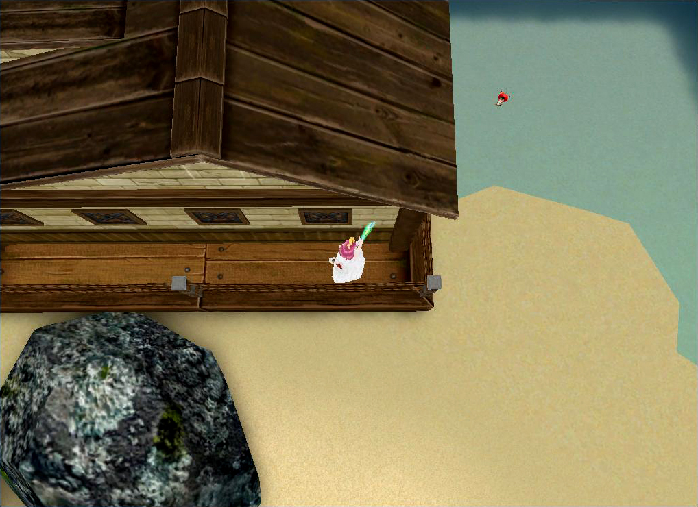 さきほどお友達にリコメをしに行って、亀2の小屋の屋根から下りるときに小屋の裏側にはまってしまいました。
