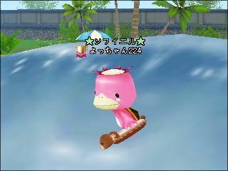 カッパコスだと浮き輪がサーフボードみたいになるので カメさん(いや今はカッパさん)サーフィンを楽しんでします