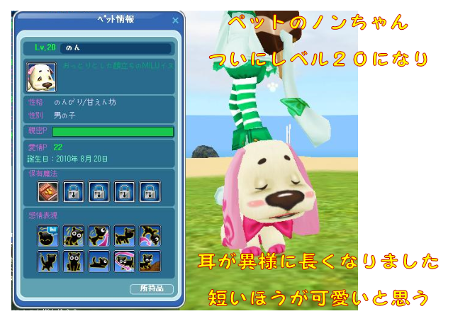 らったせいか?初めて飼ったペットの「のん」がレベル20になりました。