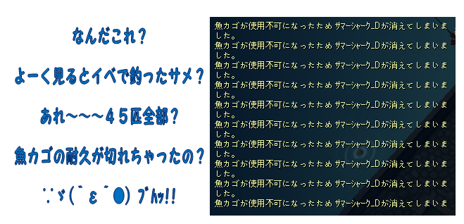 あと3匹でサマーシャークがカゴ1杯になるとこだったのに (-"-)
