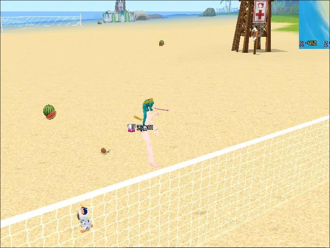 浜辺のネットのとこでやってみるが・・・。