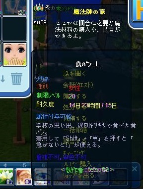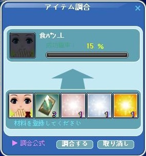 以前同窓会イベントに参加した時、生徒手帳などのアイテムが手に入ったので、期間限定でしか調合できない食パンLを調合してみました~♪