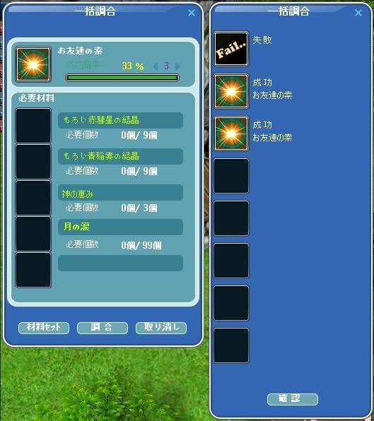 ※お友達の素を使って手なずけることができますが、手なずけられる確率は、低くなっております。