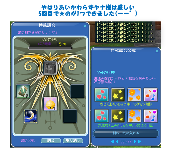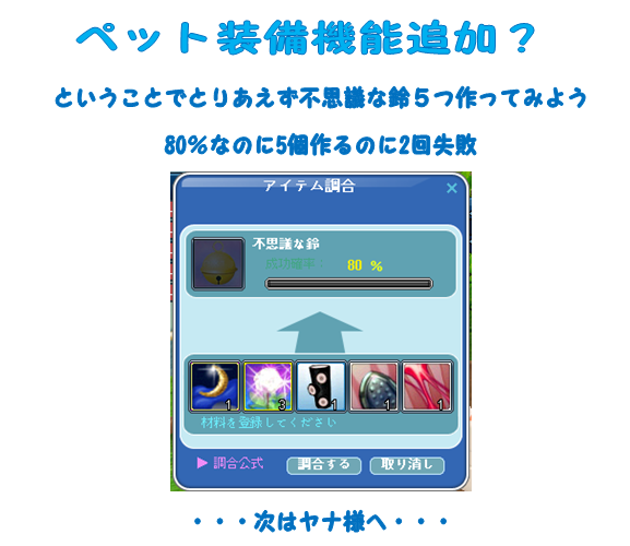 まあしかし、ひとつ出来たペットアクセサリー装備しました!!