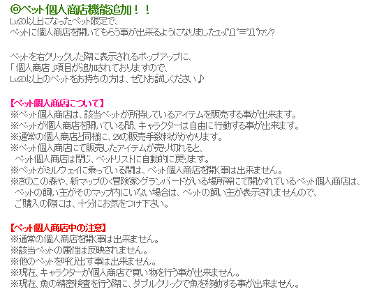 この機能も、待ってました、まさかペット商店とは思いませんでしたけど