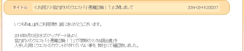 |-`).。oO(運営さんに問い合わせって言われても、いちいちSS撮れっていうのかなぁ・・・)