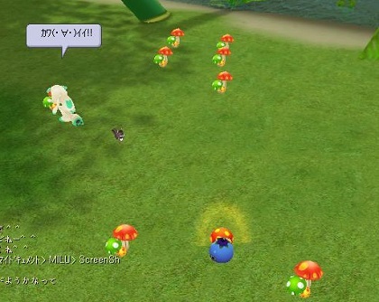 きのこの森に逃げ込んで、かんれんぼ♪