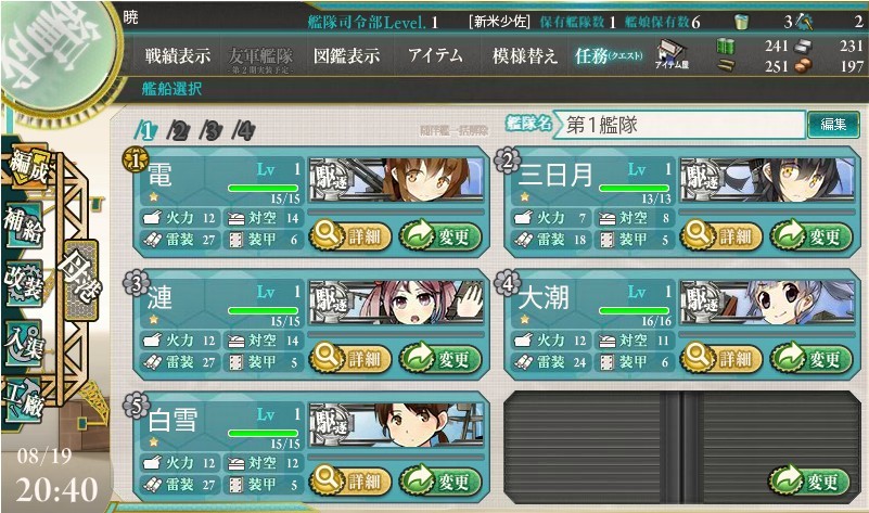 駆逐艦対引き連れて初出撃♪