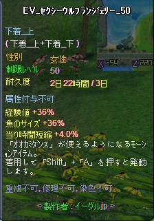 相方のイーグルさんが「早くLv70になってほしい」と下着を作ってくださいました。