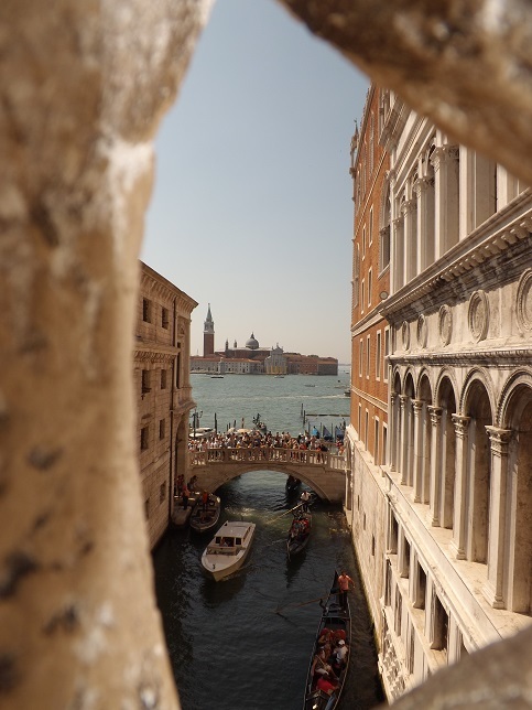これが、ドゥカーレ宮殿内部のため息から先ほどの撮影場所を見た風景です。囚人の立場からすると、本当にため息が出ますね~~~