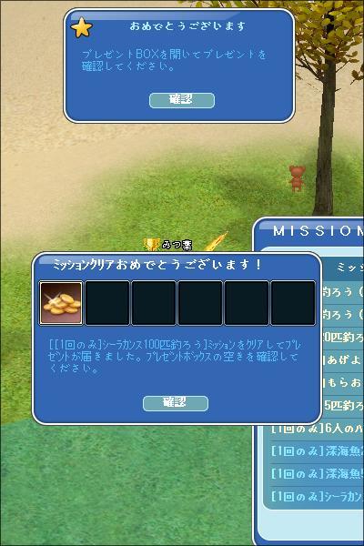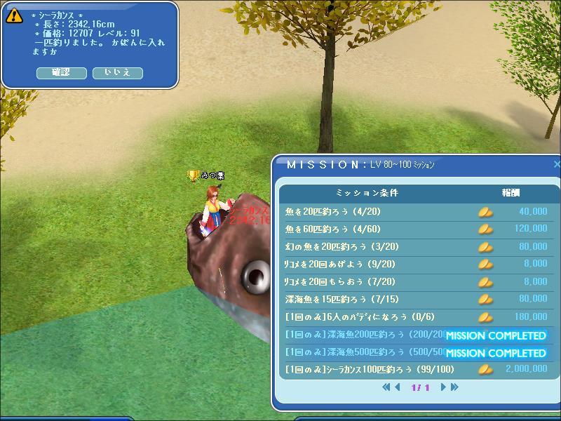 | シーラカンス100匹達成 (o´エ`ノノ゙ おめでとうございます♪ |