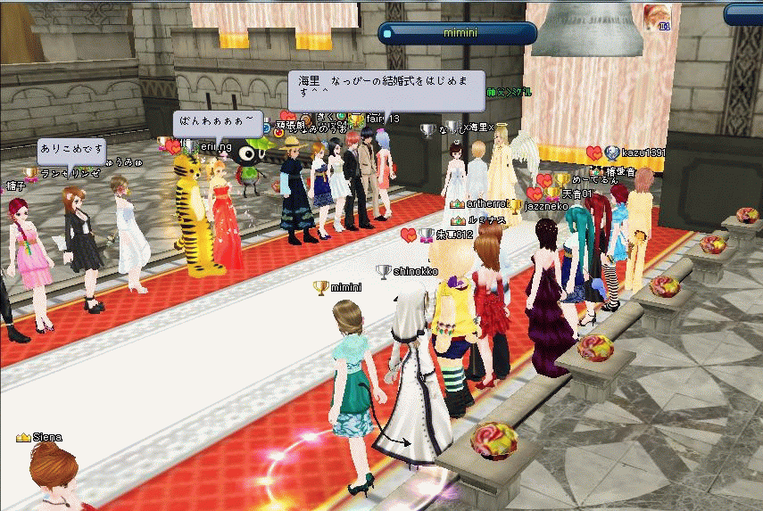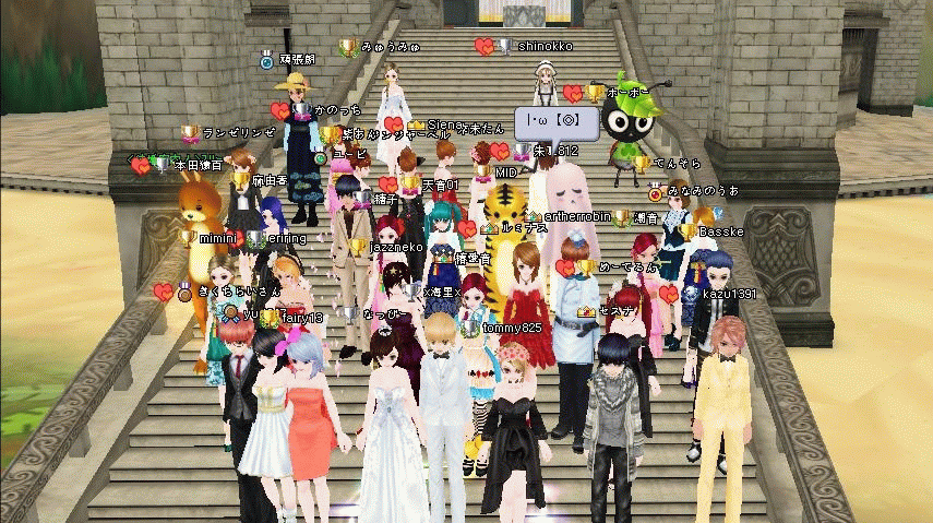 結婚式に参加中(-ω☆)キラリ