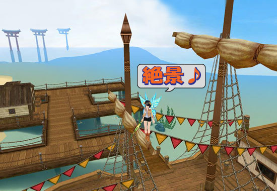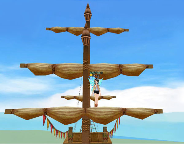 船のマストに登っちゃいました~!ヽ( ^∀^)ノ