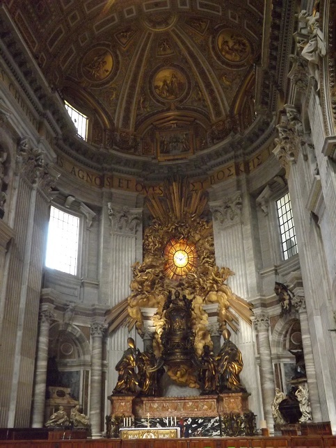 同じくベルニーニ作 聖ペテロの椅子。これと後ろの鳩のステンドグラスを見たとき、信者じゃないですけど胸を打たれましたよ~~