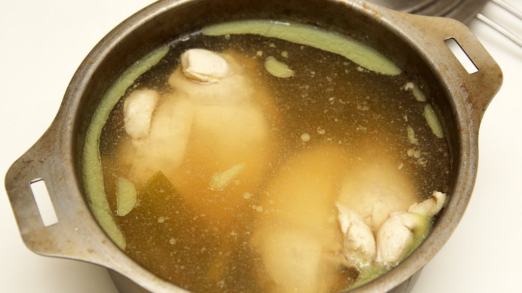 浮いている油はすくい取る。