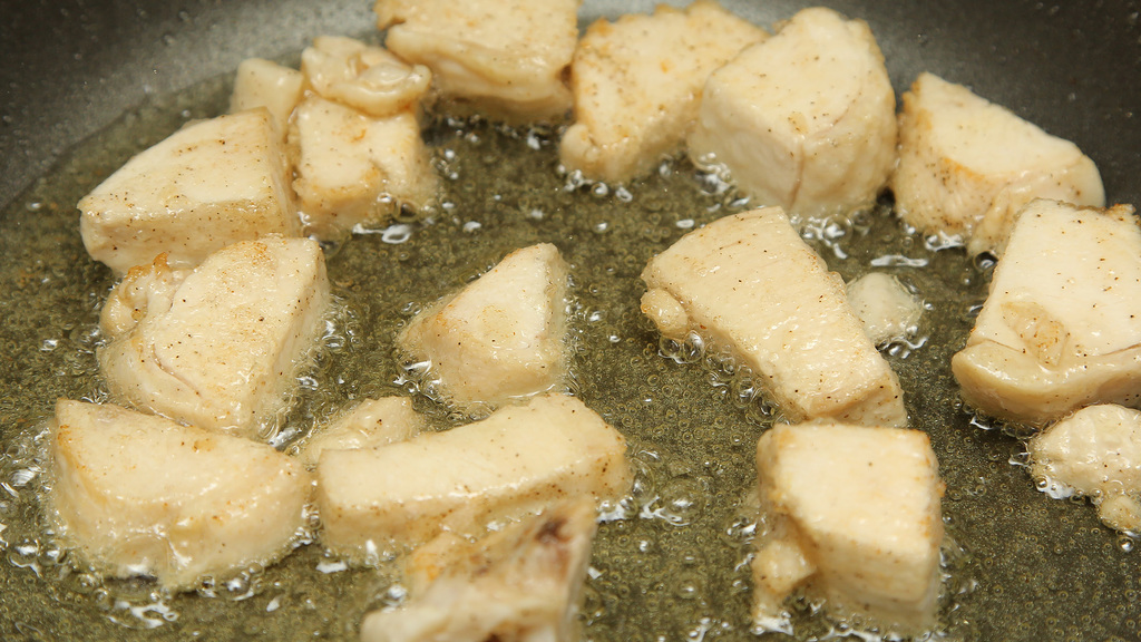 肉は既に火が通っているので、表面だけ揚がればいい。