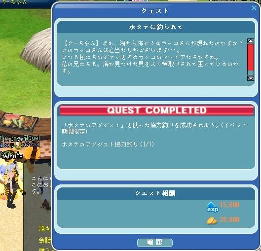 皆さんクエストクリアが目的だったためか、アメジストを何個かくれて、30回近くホタテ協力釣りができましたぁ~~