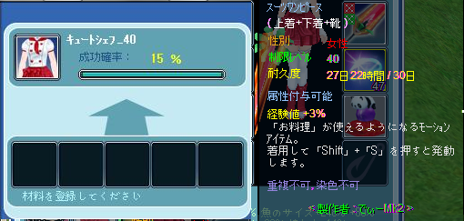 キュートシェフ70を修繕可したら制限LV80になっちゃったので、制限LV40の方も作って修繕可しちゃいました♪