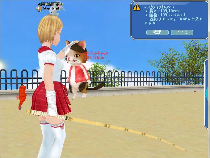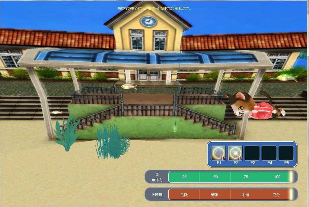 ラッキールーレットでスペシャルマタタビアロマなる物をゲットし、初めて校庭で釣りをしてみました。。(๑◕∀◕๑)