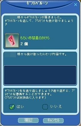 とか、プレBOXでメッセージが入り・・・
