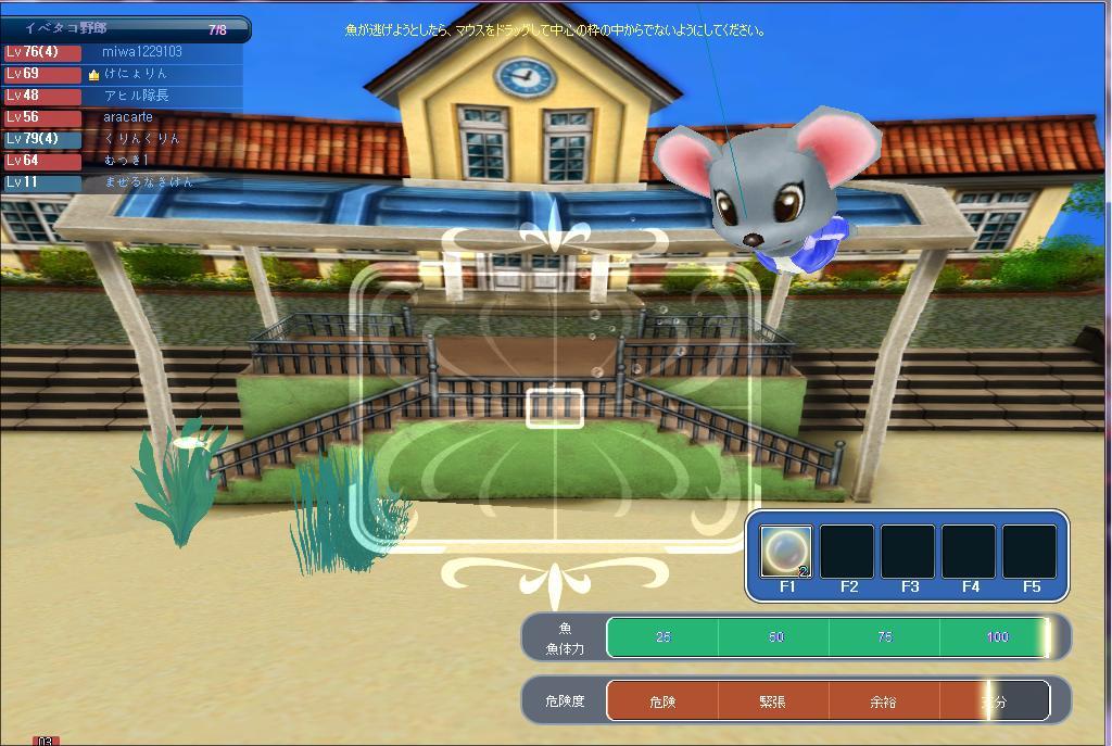 水が無いい校庭で・・・ こんな釣れ方の上に・・・ ネズミの着てる服の色が2種類?!