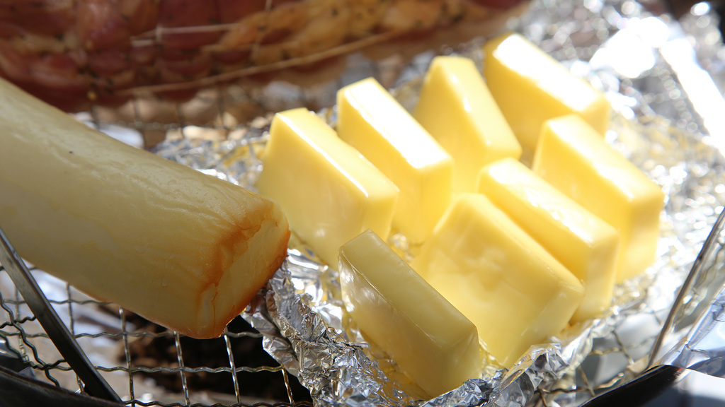 そのまた奥の皿は、ハムを燻製にするときの副産物(?)です。