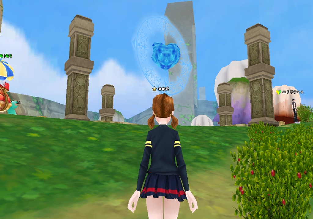空中に♡の形の石が回転しています。