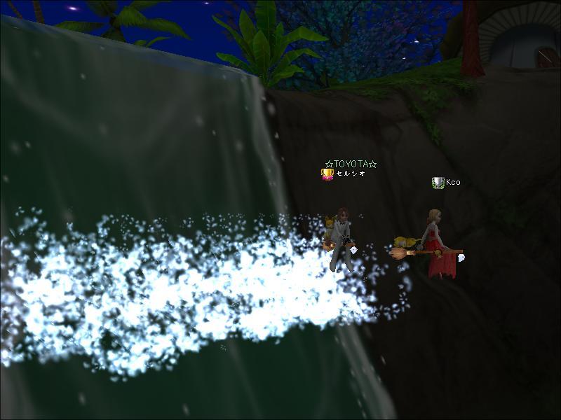 きのこの森の滝で 水遊び