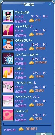 慌ててフローズンエンジェルリングの修繕