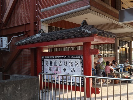 以前は阿里山駅から海抜8メートルの嘉儀駅まで森林鉄道で直通だったのですが、数年前の台風で、やや山の下にある奮起湖までしか森林鉄道が走っていないためです(2014年内全線復旧見込み)。