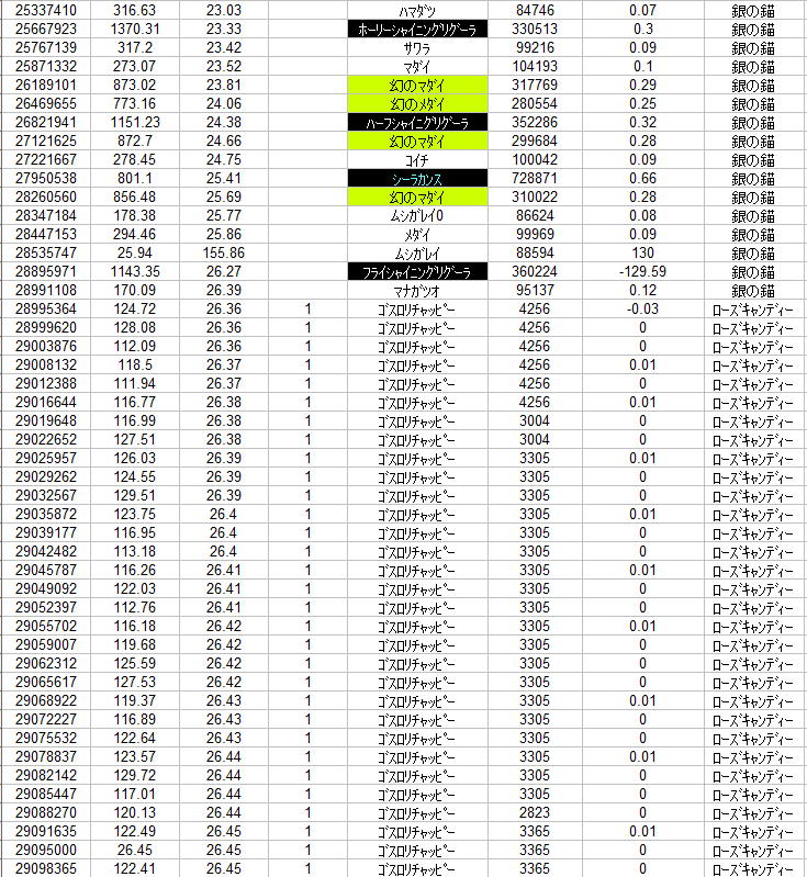 イベ餌で釣った場合とか同じ経験値じゃなかったんだ^^;