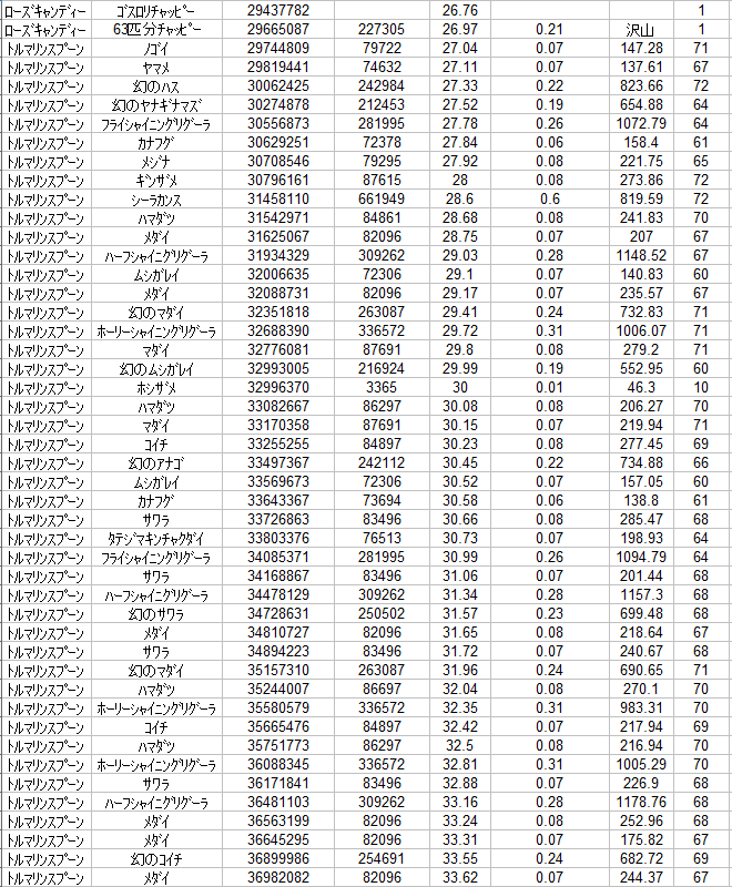 使用竿:ハイパーワイルドロマンス(プレミアム) :経験値+6% 持久力+14%、パワー幸運5段階