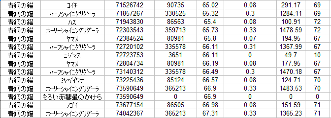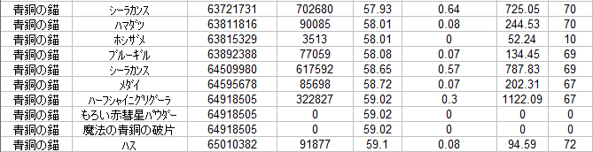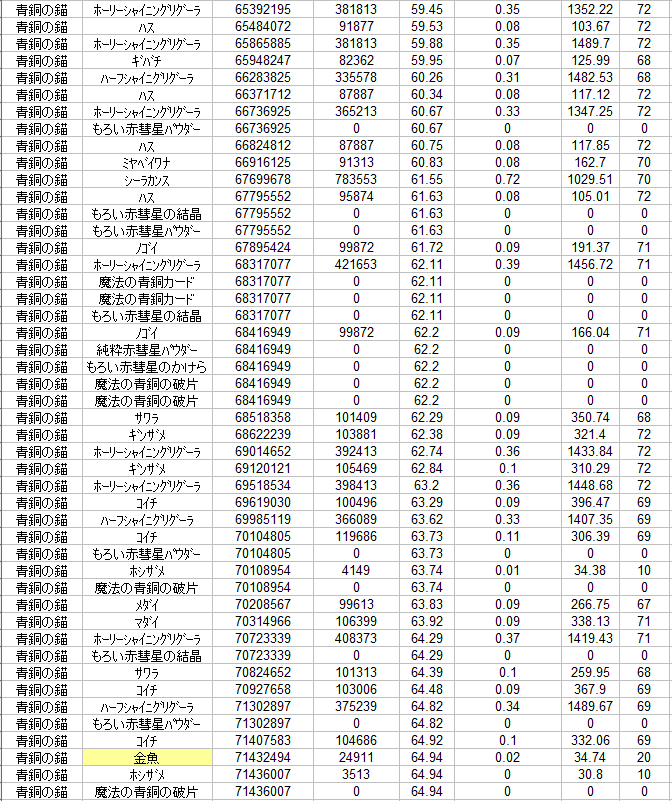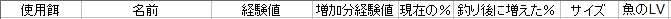 「釣り後に増えた%」欄を見て、自分の(今50LVです)この先がちょっと不安になります^^;