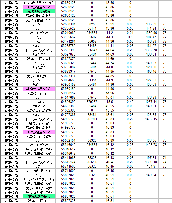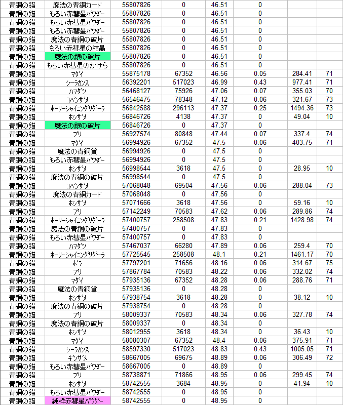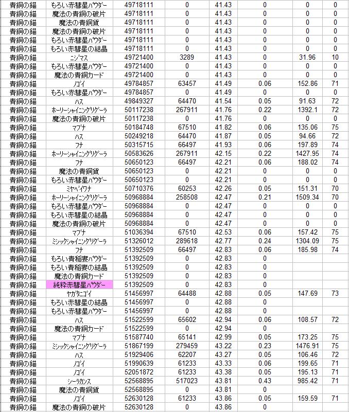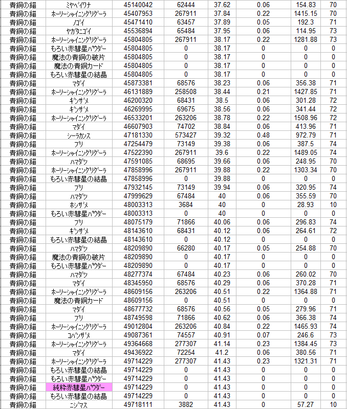材料の出る確率の波があるような・・・。