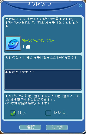さらに2回やりとりしてクレーンゲームコイン_ブルーが3枚に