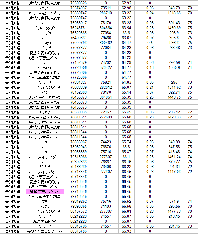 うーん,高級材料の出る量が減っていますねぇ><