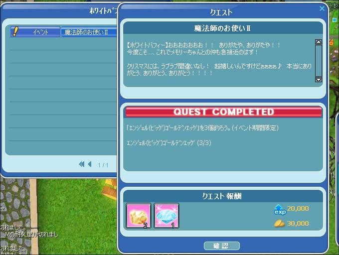 朝、報告忘れてましたので報告に行きましたらアイテム2つもらえマジカルに行きました。はずれの神の恵み?でした。もっといいもの恵んで下さいと思いました。