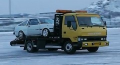 雪に浮かれて、雪上でこんな運転はいけませんよ。
