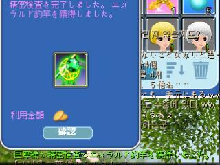 あ─────って言っちゃいました^^; 精密時、インベントリを出しているし、お魚カゴも開けているしでグリーンの文字が見えていない… 教わって気付き、同じものだー!って^^ 私はピシュさんに持って行 っちゃいましたぁ^^ |