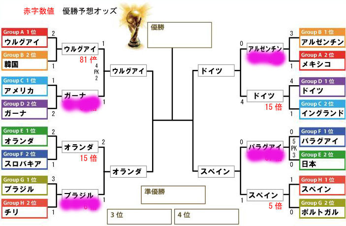| 色々参考にさせていただき、アルゼンチン・ブラジル・ウルグアイ・日本 で投票しましたー。 |