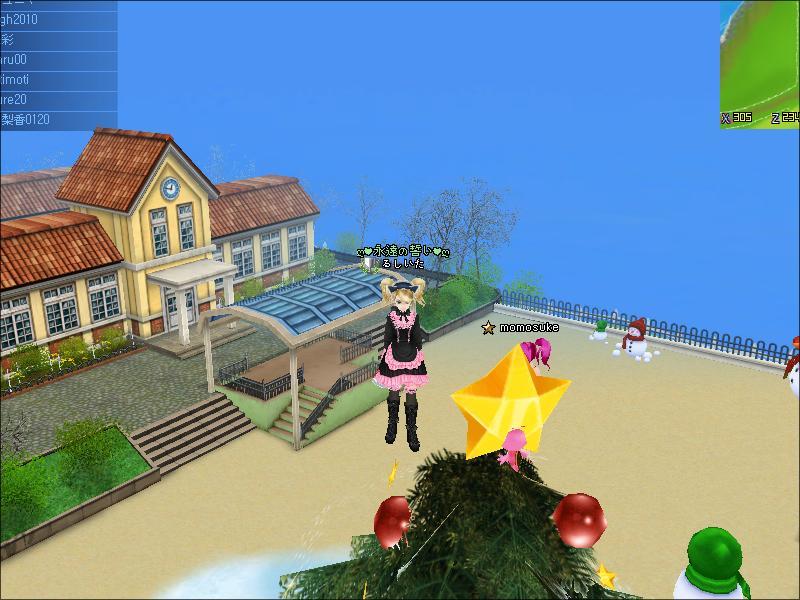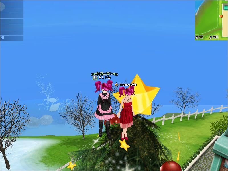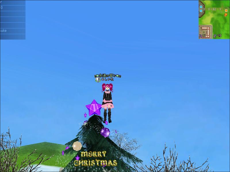 びぎももちゃんに飛んでみたら・・・・なんとスクールのツリーの頂点にwww