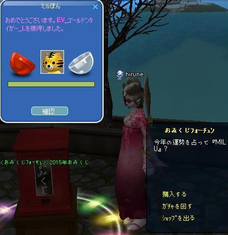 大晦日の昨日・・みるステでの公約通りに、電線さん、20UPされました!ヽ(*´∀`)ノオメデト─ッ♪2015年の抱負は・・電線さんに、去年より幸せにして貰います!((o(´∀`)o))ワクワクそして・・0時回って・・2015年元旦干支コスの桃色バージョンで、記念撮影♪ クーさん・・ 今年はクールでいくつもりだった・・・・らしいっす・・・・・初日に、その夢も儚く消え・・・(*´pq`)クスクスッ エモ大会!!!w楽しかったです~先輩方゚+(人・∀・*)+。アリガト♪ ぉお!金トラだ♪お年玉を頂いた~あの方に♪ 喜んで頂けました~(´∀`*)ウフフヒツジで・・ ウマダンス・・・ww今年の干支コスで遊ぶには・・・・ウマコスは、欠かせないかも?(*`・ω・)ゞデシ!!w元旦になってから、おみくじで・・ポン・ポン・ポンっと、出たので・・年末年始コレブも完了できました~ヾ(〃^∇^)ノわぁい♪お正月らしいお姿の、子竜さんと並んでみました♪皆様、今年も(*`・ω・´)ノヨロシクッ☆彡